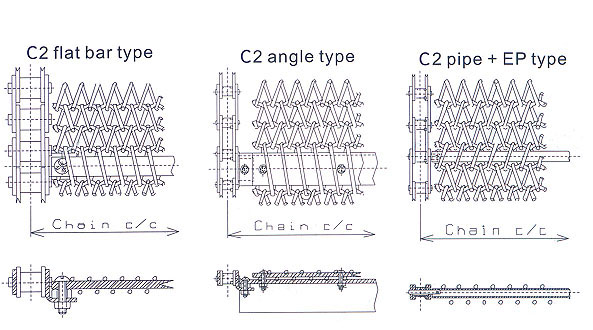 Pipe type Similar to angle type. With pipe type ,however,it is necessary to crush pipe engs so As to fit to attachment.If EP type chain is used,the same assembling procedure as Stay pin type can be applied. In this case, weight is reduced and deflection in Direction lr width is suppressed.